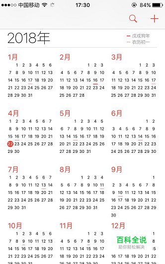 打开手机里的日历,可以看到整年的日历,看到右上角的+号