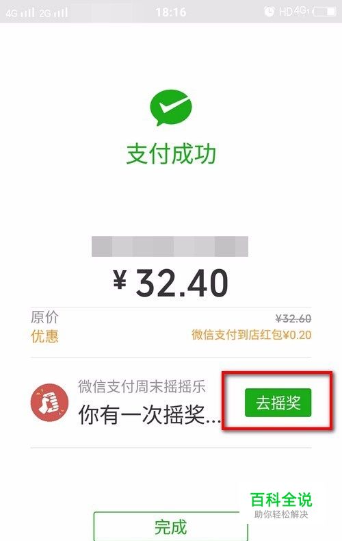 付款成功后,在金额的下面,有一个摇摇乐,点击【去摇奖】;