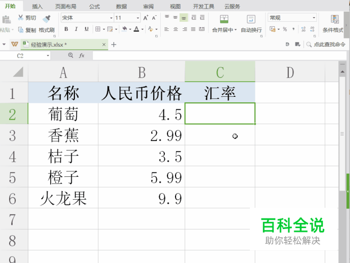 先输入被乘数。 在新的单元格中输入汇率值,如美元对人民币的汇率6.3。