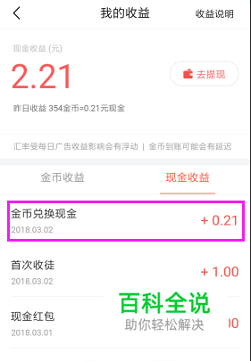 那么,请在凌晨1点左右再次来点击,这时你就会发现变成现金了,金币也减掉折合的那部分了。