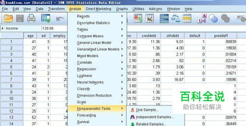 在spss中打开数据,怎么打开就不介绍了,打开数据以后,在菜单栏上执行:analyze--非参检验--legacy disalogs--1 sample k-s