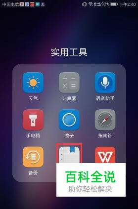 在“实用工具”文件夹中,点击“备忘录”图标,打开“备忘录”首页;