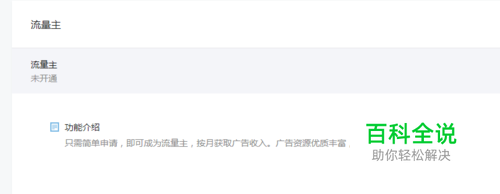 流量主就是一个公众号自愿把公众号里面指定(官方规定)的位置分享给广告主们来做广告展示,并按月获得收入。一般来说,公众号需要 有5K+(公测期间) 的粉丝数才能开通流量主。广告的展示位置是一篇公众号文章全文页面的底部区域。 广告展现形式有:图文信息、图片、关注卡片、下载卡片等等。