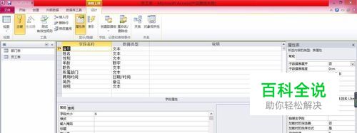 右键单击“员工表”, 选择“设计视图”快捷菜单命令,打开表设计视图。