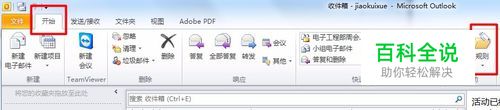 打开邮箱,在【开始】菜单中打开【规则】下拉选项框。