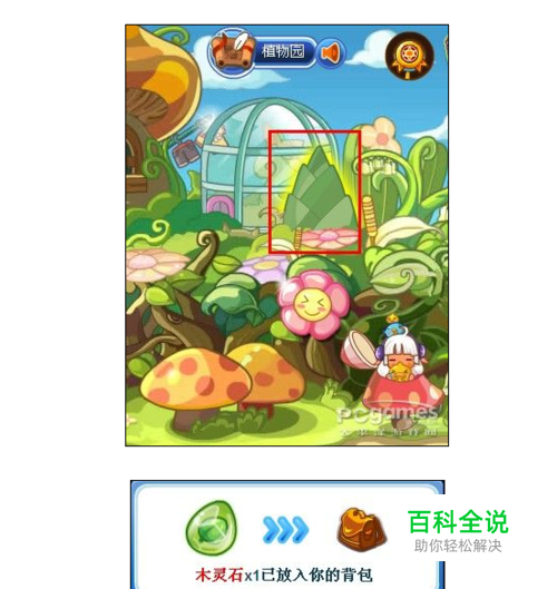 木灵石:可以在植物园获得,点击图中的竹笋,把他剥开就有木灵石了