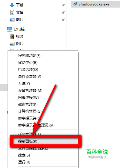 首先,如果软件被检测为商用版本,我们需要先卸载这个软件,通过控制面板我们可以卸载这个软件。如果是win10系统,鼠标右键选择:控制面板,如果是win7系统直接鼠标左键点击win图标,然后选择:控制面板