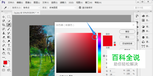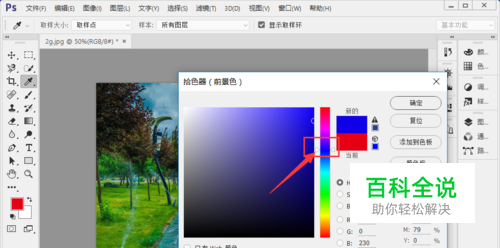 进入拾色器可以点击颜色块区域的任意位置,找到合适的颜色,点击 确定按钮