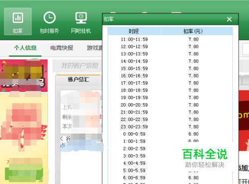 2、进入之后,我们首先看到的是扣率,这个指的是每个时间段扣费的金额,你就可以看到你在这个时间段花了多少网费。