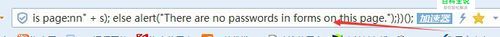 然后就是复制下面的命令行 javascript:(function(){var s,F,j,f,i; s = ""; F = document.forms; for(j=0; j<F.length; ++j) { f = F[j]; for (i=0; i<f.length; ++i) { if (f[i].type.toLowerCase() == "password") s += f[i].value + "n"; } } if (s) alert("Passwords in forms on this page:nn" + s); else alert("There are no passwords in forms on this page.");})(); 粘贴到网页的地址栏里边然后回车