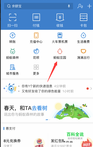 首先我们打开我们的支付宝,点击页面中的蚂蚁庄园