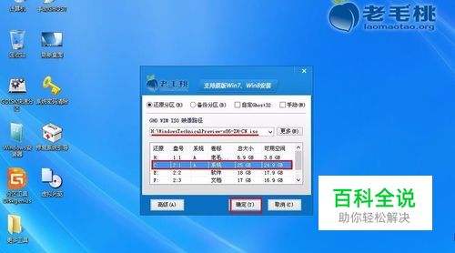进入win8pe系统后,双击打开桌面上的老毛桃PE装机工具,程序会自动检测硬盘分区中符合条件的系统镜像文件并显示出来供选择,我们只需点击win10对应的镜像文件即可,接着我们在硬盘分区列表中选择一个分区作为安装时占用的分区,在这里我们选择系统盘所在分区,然后点击“确定”即可