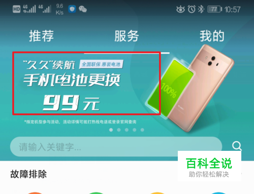 点击进入后,即可看到上方轮播图中99元更换原装电池的简介。我们点击该图片进入。