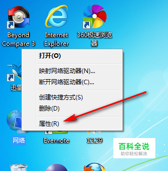 首先我们可以在桌面上找到“网上邻居”的图标,鼠标移到图标上方,右键选择属性,如下图所示: