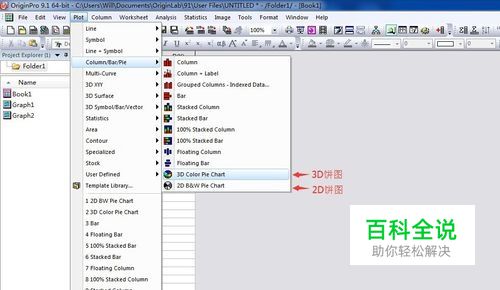 Origin将饼图也归纳于柱状/条状/饼图里,饼图对工作表数据的要求是,只能选择一列Y值。该图形特点为表示出各项所占的百分比。Origin图中可以做3D彩色饼(3D Color Pie Chart)图和二维平面饼(2D B&W Pie Chart)图,下面就进行详细介绍。
