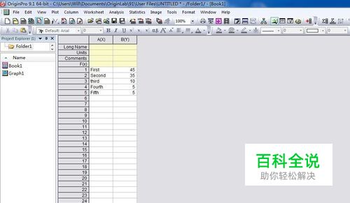 选中数据A(X)、B(Y),然后执行Plot-Columns/Bars/Pie-3D Color Pie Chart命令,绘制图形如图。