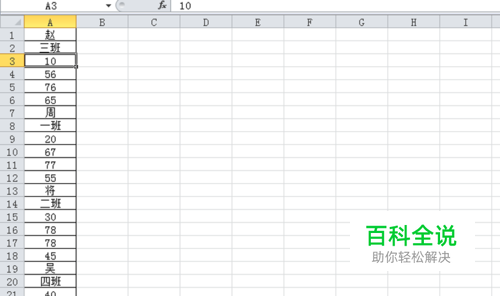 首先启动excel2010,打开一份只有一列的数据表格。