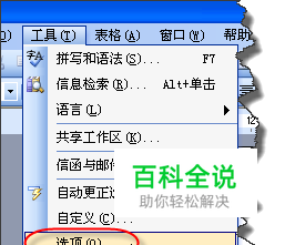 打开我们要打印水印的文档,在“工具”菜单下选择“选项”菜单。