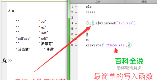 对于纯数字的内容,可以只将读入的结果给一个变量,该变量是矩阵的形式,对于元素的引用,可以用“(行数,列数)”的形式引用。但是这里给的例子是混合格式,所以看到,凡是字符部分,都为空。