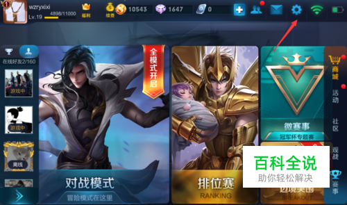 首先,我们点击打开王者荣耀主面板,然后点击页面右上角的设置图标