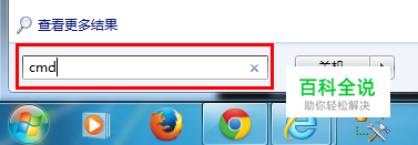 在“搜索程序和文件”输入框中输入字符串“cmd”,按回车,如下图:
