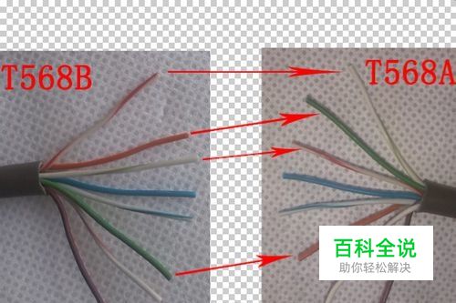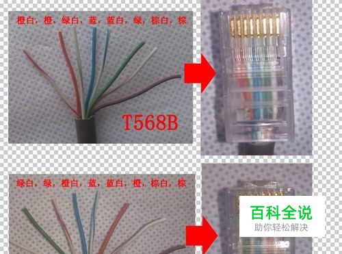 上面提到的两个“美国协会”制定了两种标准,一种称为“T568A”,线序是绿白,绿,橙白,蓝,蓝白,橙,棕白,棕,另外一种称为“T568B”,线序是橙白,橙,绿白,蓝,蓝白,绿,棕白,棕。