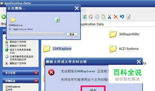 2,结果弹出提示“说文件夹正被使用,要先关闭使用这个文件夹的程序”,在任务栏上找了一遍,任务栏上没有任何打开的程序,在任务管理器中也没有程序正在使用这个文件夹,怎么就删除不了呢?