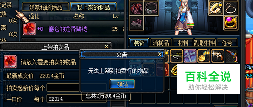 玩dnf的朋友应该都用过拍卖行的功能吧,用那个买卖东西很方便,但是有时候却会出现一些问题,比如拍卖行无法上架货物,在这里给大家分享一下拍卖行无法上架货物该怎么办。
