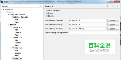 检查已安装的tomcat在Myeclipse中是否配置完整。包括tomcat路径,选择的jdk版本