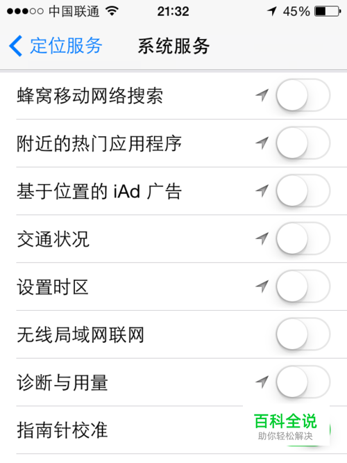前往【设置】--【隐私】--【定位服务】--【系统服务】,将所有选项全部关闭,指南针校准除外;这些功能平时都不太用的上,如果开启手机GPS会一直发送接收数据,消耗设备电量;