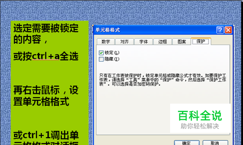 用MSOffice 2003打开一个文档,选中需要设置锁定的内容,弹出单元格设置对话框,勾选锁定。