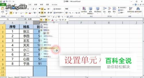 我们先制作好样表,现在这个比例列的数据要以百分比形式显示。选中这一列单元格,单击鼠标右键,然后点击“设置单元格格式”。