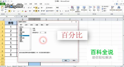 然后点击“百分比”,我们不需要小数点的位数,所以写0,然后单击“确定”即可。
