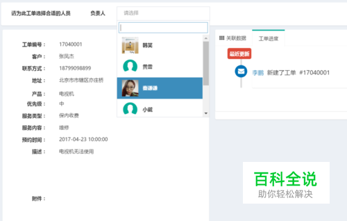 新建工单并分配,系统配置好了之后就可以新建工单并分配了,从新建工单中选择客户(客户可以Excel导入),或者新建工单时直接新建客户和产品,分配工单时,可以按照地图派单,这样你就可以派给最近的服务人员,也可以从钉钉通讯录中选择用户派单(记得先把用户加到上一步提到的服务人员组里面)