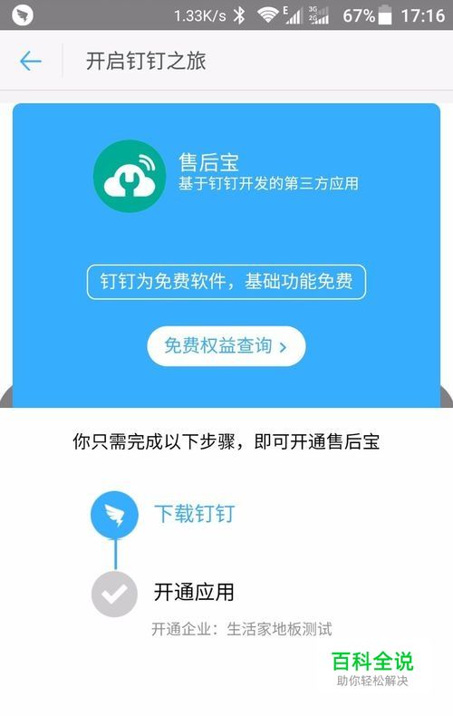 首先你要是一个钉钉团队的管理员,如果是新建的钉钉团队的话,需要至少6个人才能使用,通过钉钉的应用市场找到售后宝