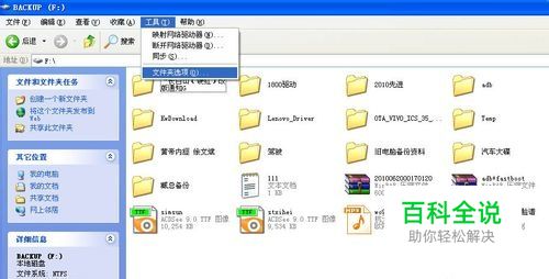 我们假设知道隐藏的文件夹在F盘,我们打开我的电脑,打开F盘,点击上面的工具菜单,点开文件夹选项。如图: