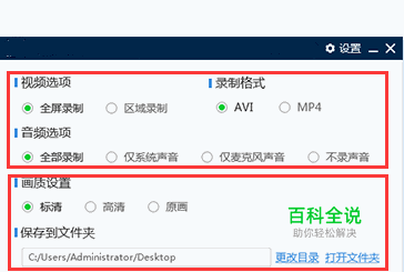 打开软件后,先设置好录屏范围、录制格式、画质等一系列的参数。当然软件已经默认了参数,用户也可以忽略设置参数的操作,直接进行录制。