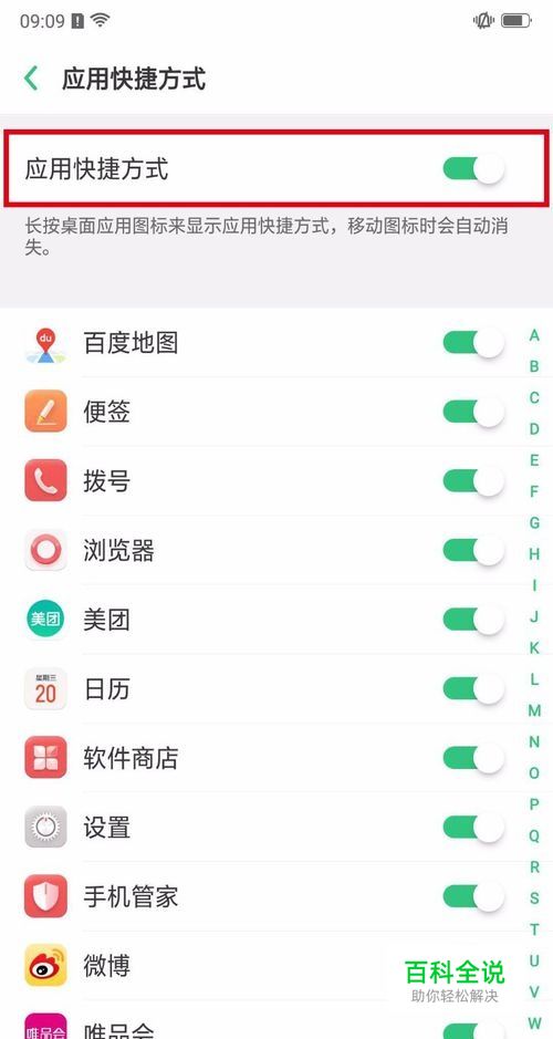 2、然后打开“应用快捷方式”的开关。
