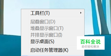 鼠标放在桌面最底部任务栏,单击鼠标右键,出现“属性”