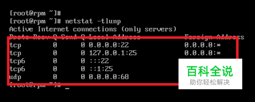 在CentOS主机上查看当前主机在监听哪些端口的命令是netstat,常用的命令是: netstat -tlunp 这个命令会显示出当前主机打开的所有端口,显示结果如下所示,从图中可以看到目前主机上开放的端口tcp端口的22和25,upd的68号端口
