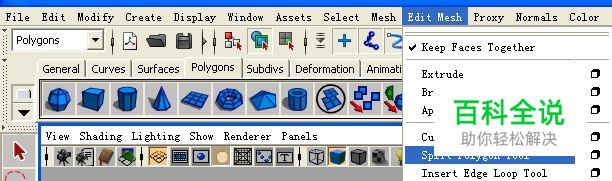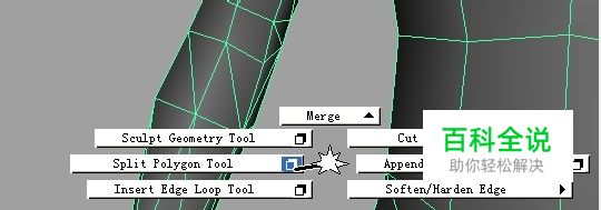 当然,我们也可以在菜单栏找到该选项,在polygon模块,在edit mesh一栏中,找到split polygon tool,点击其后面的小方框同样可以打开编辑属性。