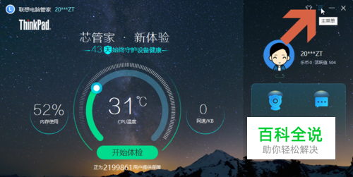 点击联想电脑管家软件主界面图示的主菜单按钮。