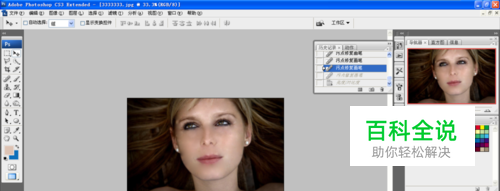 继续修掉脸部多余的黑点,点击历史记录,点击快照按钮,然后选中图片,将快照前面用画笔工具进行勾选,然后选中历史记录画笔工具,对图片中的斑点进行修改,将透明度调整到50%,点击确定。
