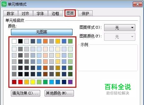 第三步:在弹出的对话框中,切换至“图案”,选择需要的颜色。