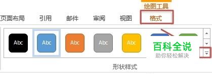 选择预设形状样式: (1)选中图形,然后在“格式”选项卡“形状样式”组预设中,选择合适的样式。如果显示的没有满意的,可以单击更多按钮(如下图所示)。