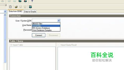 在Data fromODBC页中选择需要导入的文件的格式,选择ExcelFiles.输入用户名密码。然后点击Connect