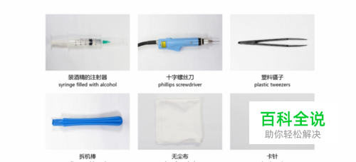 1、准备好要用到的拆机工具: 装酒精注射器、十字螺丝刀、塑料镊子、拆机棒、无尘布、卡针等。