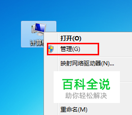 我们使用鼠标右键单击桌面的计算机图标,选择管理选项,如图: