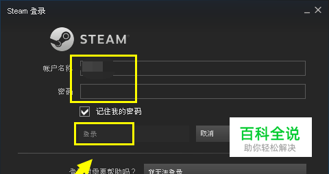 输入你的steam帐号和密码,单击登录按钮,如下图所示