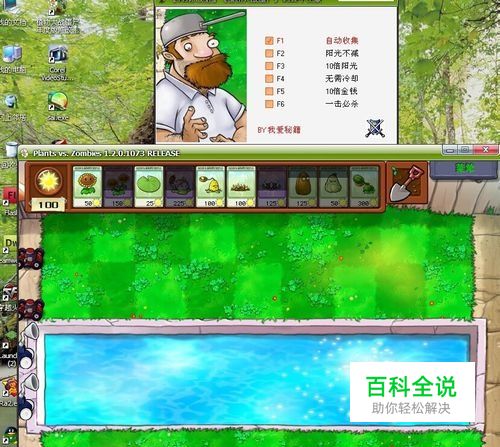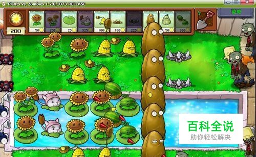 我用了一个作弊的,不过只是收集阳光,省鼠标不是,打了好多回之后,来计划一下,后面要放了地刺,防那个地下工作者,防贼还要。防空还要。不能让他们走得太快,,,,,想好了,开战吧。